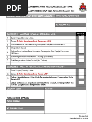 Senarai Semak Notis Memulakan Kerja Di Tapak Osc Kk Pdf
